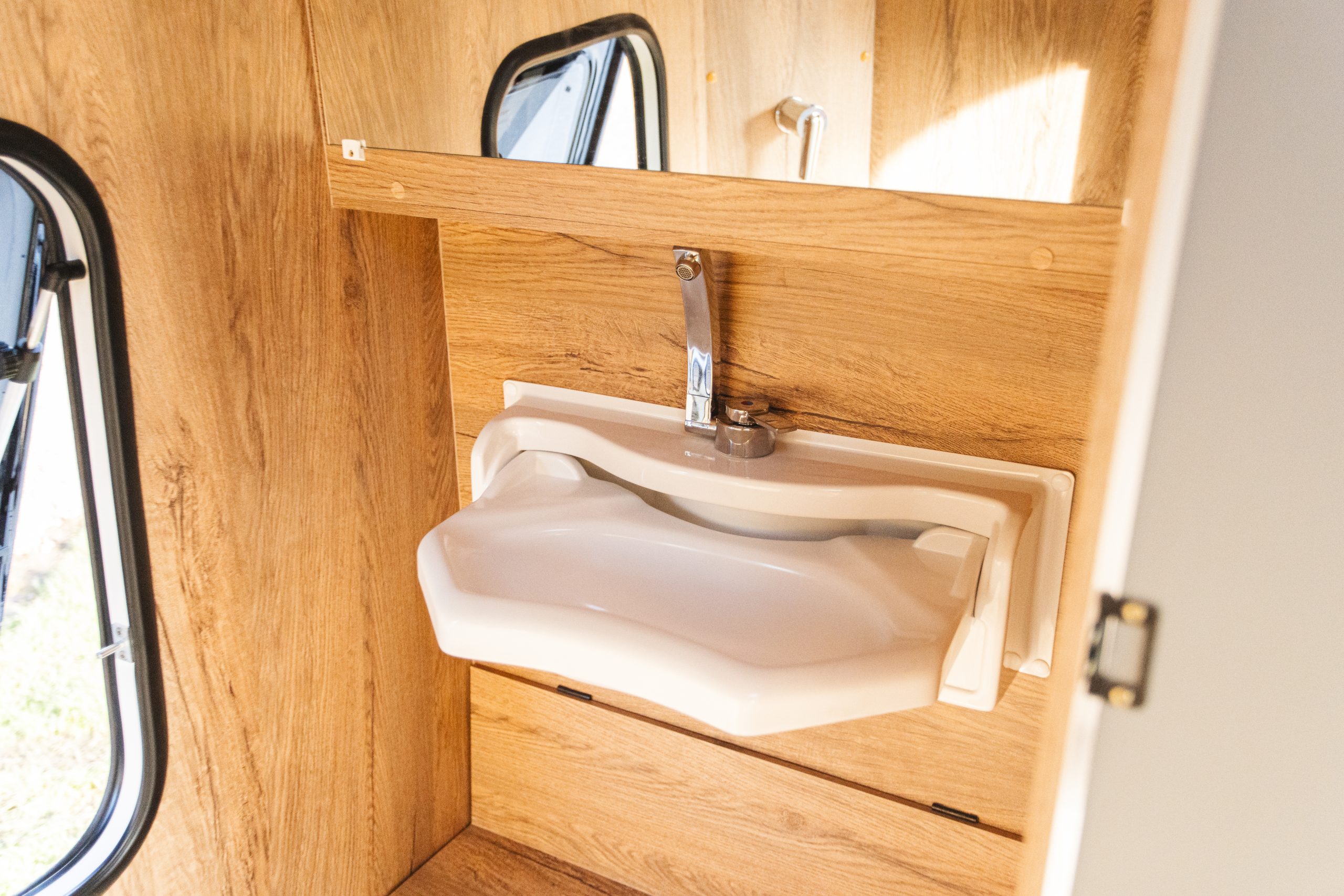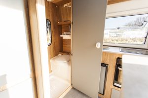 Designed to keep you comfortable even when you’re far from the nearest facilities, the bathroom in the Twin Sport features a shower, Thetford cassette toilet, and a space saving tip-up sink with an integrated tap