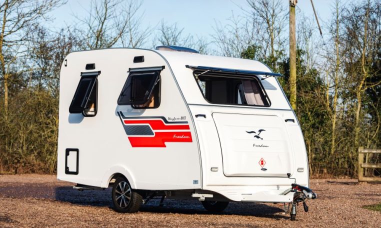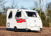A superb starter caravan for couples, the Wayfarer Duet is light enough to be towed by almost any car yet offers a suprisingly spacious interior with a bathroom and a functional kitchen with a 2 burner gas hob & 12V compressor fridge. The double dinette at the front effortlessly converts from a large seating area to a 1.9m x 1.7m (6′,3″ x 5′,7″) double bed.